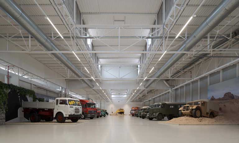 Pensato per accogliere una vasta gamma di mezzi da trasporto On-Highway, mezzi commerciali e veicoli storici si trasforma in una location per eventi non convenzionale e versatile, che permette la rimodulazione continua degli spazi, pur conservando il suo DNA industriale.